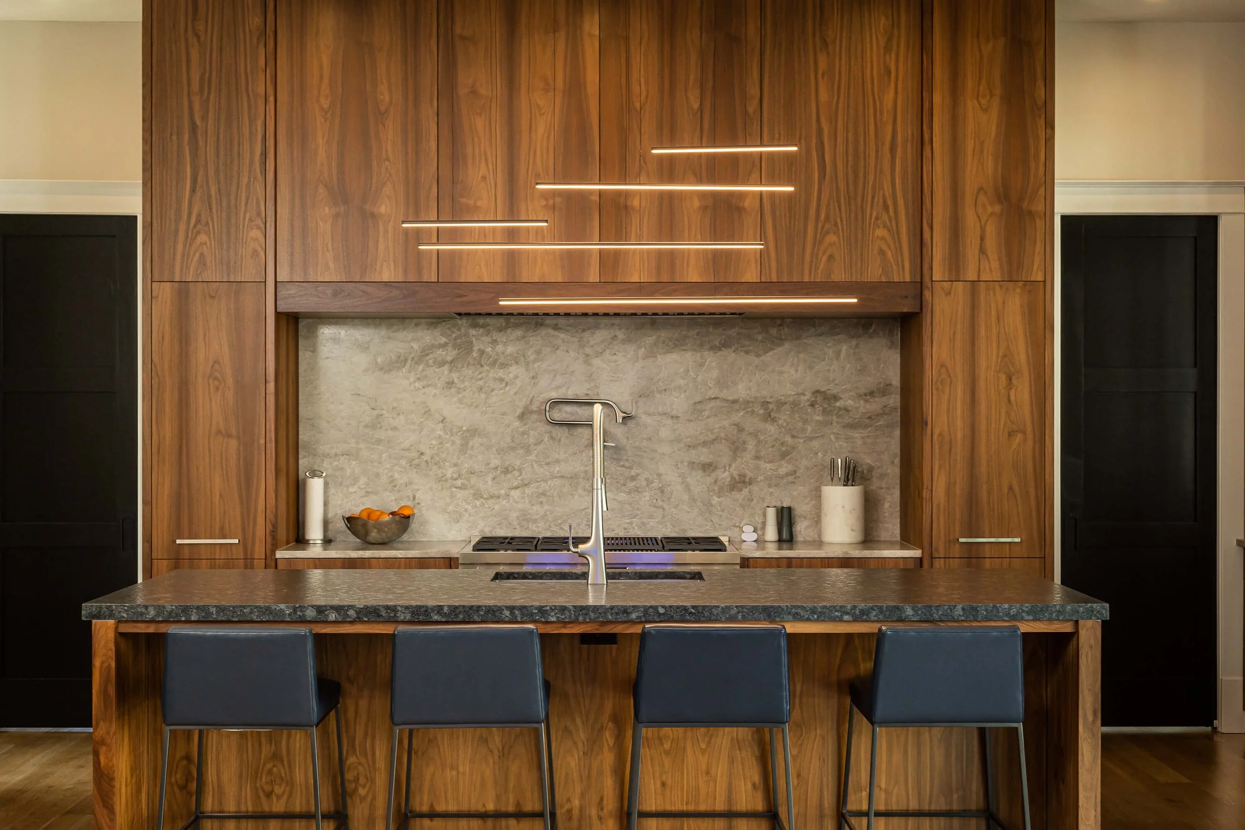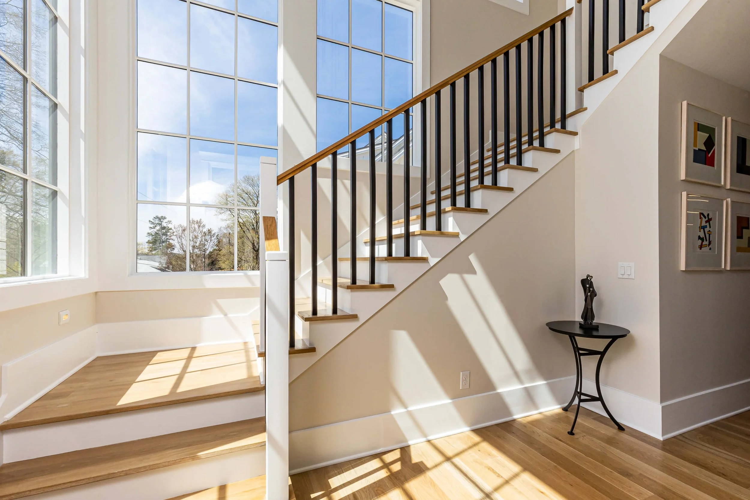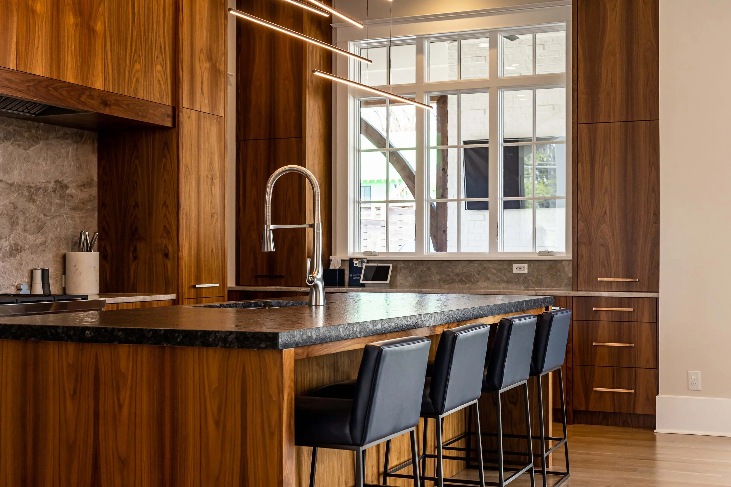 This home brings together classic architectural details and clean, modern design in a way that feels timeless and comfortable. Black-framed windows, refined millwork, and warm natural materials create bright, inviting spaces that work just as well for everyday living as they do for entertaining. It’s a thoughtful blend of tradition and modern style, designed to feel elegant, livable, and enduring.